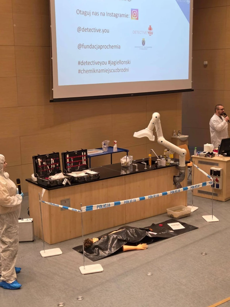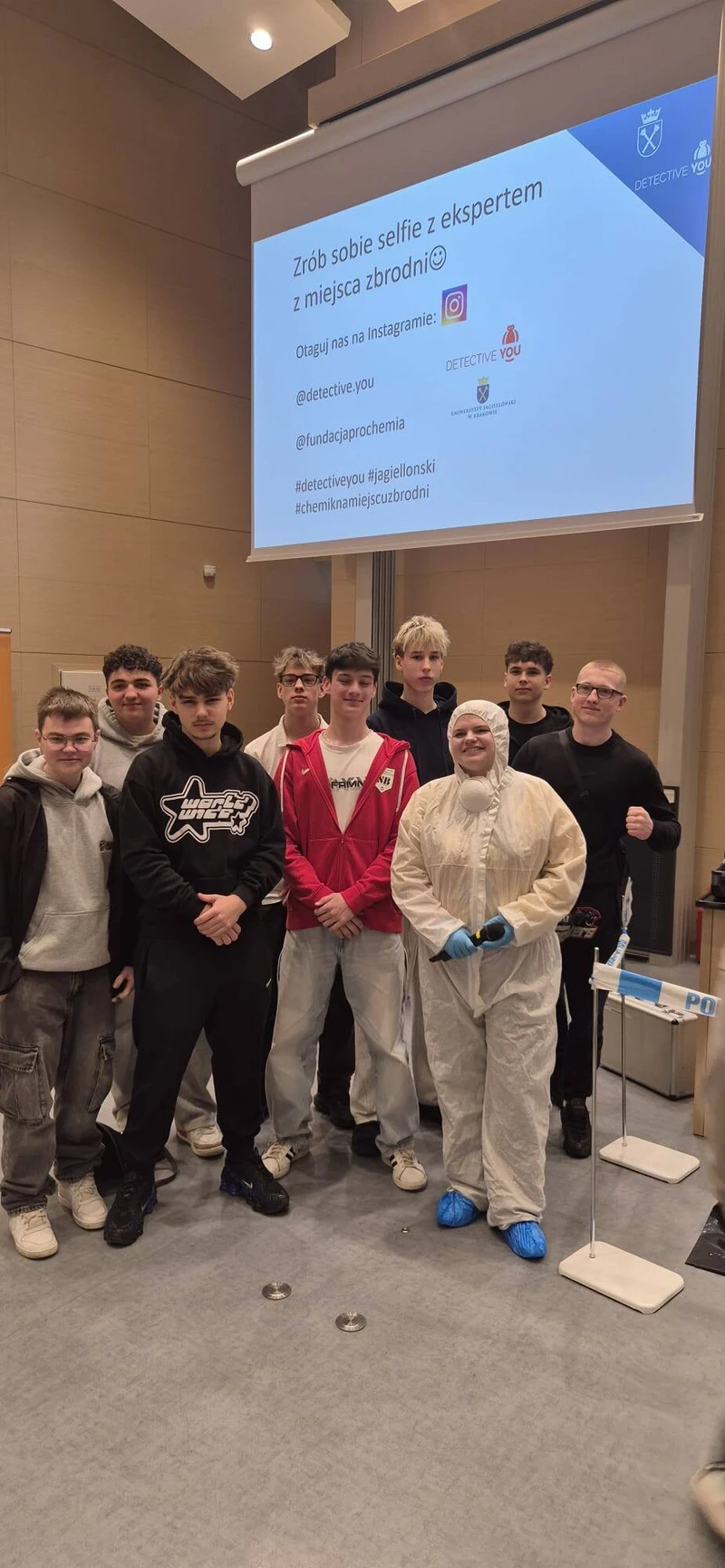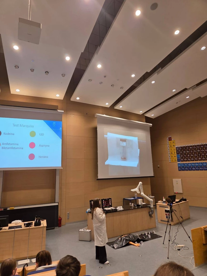 26 marca 2026 roku uczniowie klas o profilu mundurowym 1E i 2D wzięli udział w wyjątkowym pokazie chemicznym pt. „Chemik na miejscu zbrodni”, który odbył się na Wydziale Chemii Uniwersytetu Jagiellońskiego.